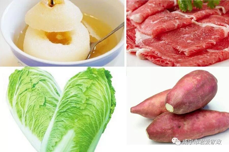 第一:冰糖梨,把梨中间清干净,里边搁三到五块冰糖,蒸开,有滋阴润燥的作用。